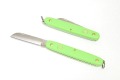 TOPアレンジ用道具 フローリストナイフ ナイフ フローリストナイフ直刃 ライトグリーン 価格: ¥2,079 (税込) 販売期間: 数量: 本 在庫: 在庫あり 在庫 在庫あり 返品についての詳細はこちら ※ 商品は表示設定や印刷再現上、若干色調が実物と異なる場合がございます。 ご了承ください。 サイズ:全長約17cm(折りたたみ時:約10.5cm) × 幅約1.6cm(折りたたみ時:約2.2cm) 刃渡り:約5.5cm 使いやすさ抜群、スイス製プロ仕様のフローリストナイフです。 葉っぱの中に隠れても見つけやすい定番のライトグリーン!